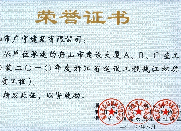 2010年錢江杯(舟山建設大廈C座)