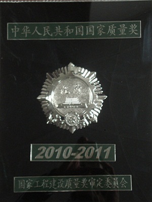 2010-2011年度國家優(yōu)質工程獎銀質獎獎牌(舟山建設大廈C座)